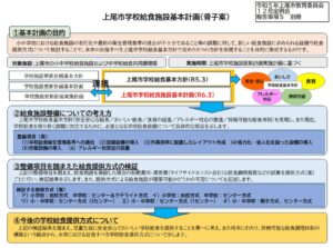 以上は給食費無料化に関する現在の動きについてですが、学校給食については、運営方式をどうするかという大きな問題があります。昨年12月に示された「上尾市学校給食施設基本計画(骨子案)」を見てみましょう。