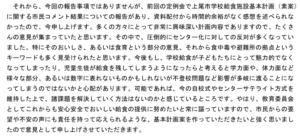 二つ目は、今記事の冒頭で紹介した「上尾市学校給食施設基本計画(案)」を協議の席での教育委員の発言です。