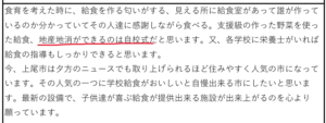 『学校給食施設基本計画(素案)』についての市民アンケートでも、「地産地消」についての意見が出されています。ひとつだけ例を挙げてみます。