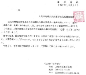 上尾市は来年度に向けて、上尾市地域交通活性化協議会の委員を「公募」しました。