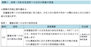 こうした施策(事業)があるために、前々記事で紹介した「審議会等における女性の登用状況」に繋がることになります。