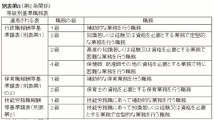 このとおり、適用される「行政職報酬基準額表」では、2級の場合、「知識若しくは経験又は資格を必要とする業務で定型的な業務を行う職務」となっています。
