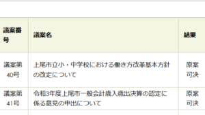 補足すると、2番目の例として挙げた『上尾市立小・中学校における働き方改革基本方針の改定について』は、当ブログのNo.235記事でもお伝えしたとおり、元となる「基本方針」が2年前に議案にならなかったにもかかわらず、「改定案」がいきなり議案になった、という経緯があります。