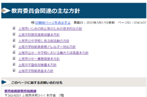 上尾市教育委員会のHP(正確に言えば、上尾市役所HPの中の市教委のページ)には、「方針」としてまとめられているメニューがあります。ところが、これらの「方針」について見てみると、中には杜撰な決め方の「方針」があるのです。