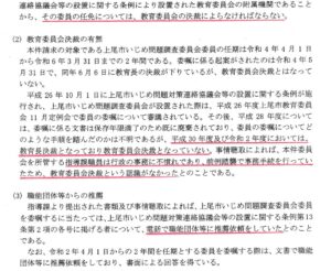 このとおり、監査委員は「(いじめ問題調査)委員の任免については、教育委員会の決裁によらなければならない」と述べています。