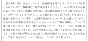 〇「部活動地域移行推進協議会」委員である中学校校長の発言について