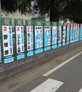 掲載した写真の「学校名」等は加工して隠しましたが、実際は公道のほうに向けて、部活の大会等で活躍した個人名が堂々と出されています。しかも、令和4年度の実績の看板が目につきます。