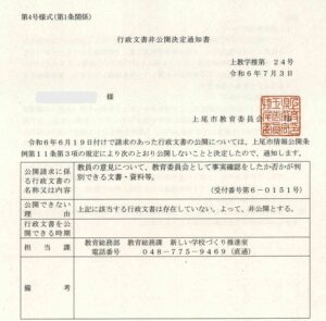 私は教育委員会が事実確認をしたかについて、情報公開請求しました。