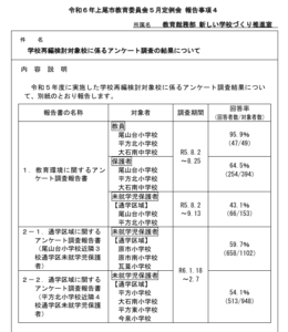 昨年度実施された「学校再編検討対象校に係るアンケート調査」の結果が、上尾市教育委員会5月定例会で[教育総務課/新しい学校づくり推進室]から報告されました。