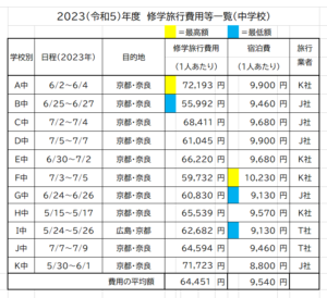 公開された昨年度の修学旅行一覧表から、次のことが分かります。