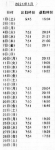 この職員は、運動会当日は、5:45に出勤し、15:04に退勤しています。