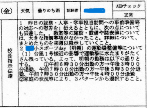 この疑問は、開示された運動会前の『学校日誌』が参考になります。