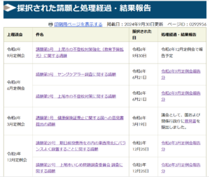 掲載された『請願』の扱いについては、次のとおりです(令和5年12月分まで)。