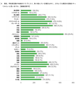 上尾市立中学校における部活動地域移行検討報告書』という資料があります(現在は市のHP教育委員会のページの奥に眠っています)。これは、部活動地域移行をすすめるにあたり、児童・生徒からアンケートを取った貴重な資料です。
