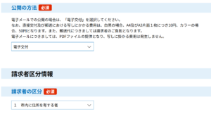 ⑫「公開の方法」は「電子申請」を選択。