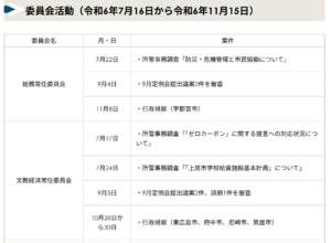 市議会HPに「委員会の動き」として次のように掲載されています。