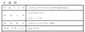 以下は、今年4月1日の上平北小の第1回学校運営協議会の会議録です。