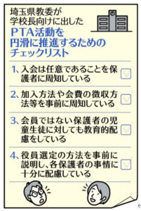 *2017年1月、埼玉県教委が「PTA活動を円滑に推進するための留意事項について」という文書を県内の小中学校長に宛て通知していること。