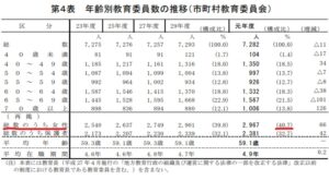 これらのデータから明らかですが、上尾市は、この4月から、教育委員の女性の割合が下がってしまいました。これは「後退」以外の何物でもありません