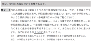 これは「極めて意図的な設問」と言えるでしょう。まず、「(市内小中学校では)学校規模に偏りが生じています」と「他人事」のように説明しています。であるならば、なぜ今まで市教委としてそれを放置してきたのかについての説明は全くありません。