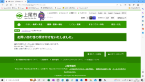 | 各課の「問い合わせはこちら」から問い合わせをした場合でも、問い合わせ完了メールが届くように設定してほしいとのことですが、こちらについては、ホームページの仕様上、設定することができません。 |