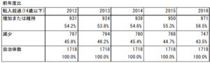 この論文の中で渡邊氏は「学校統廃合と地域の人口動態/市町村における学校数の変動と人口動態」について、2012年~2016年のデータを示したうえで、次のように指摘しています。